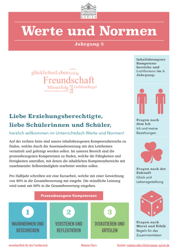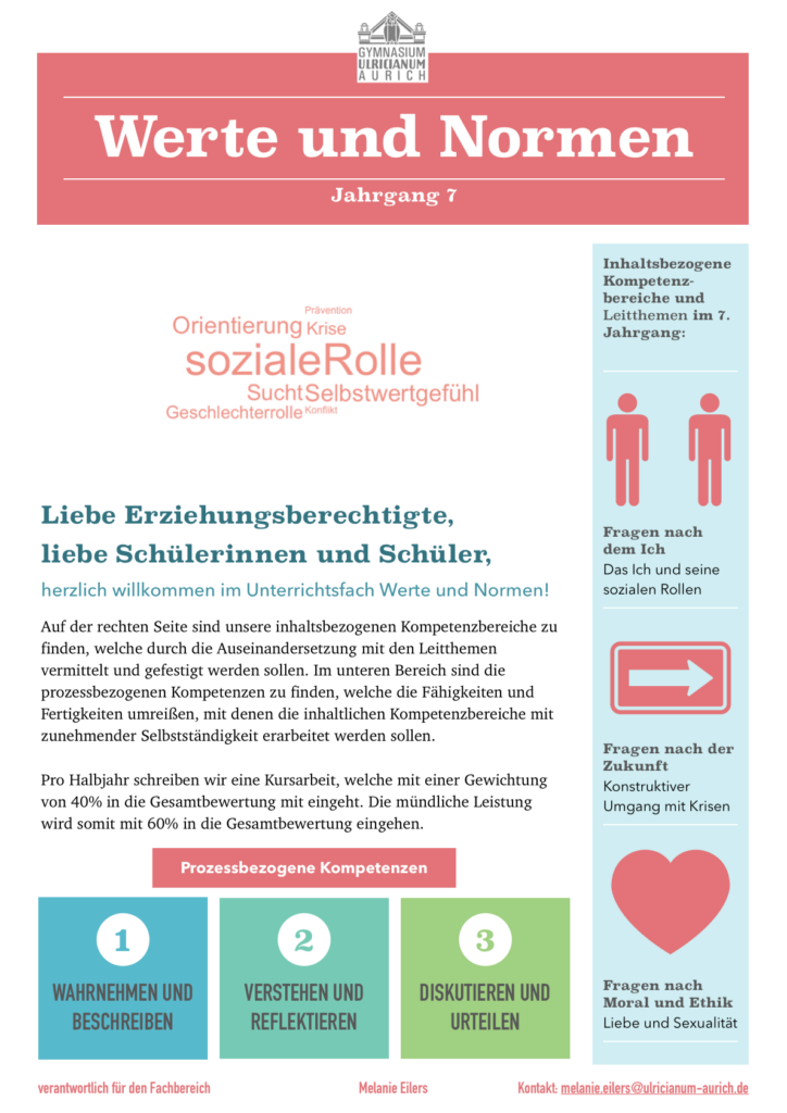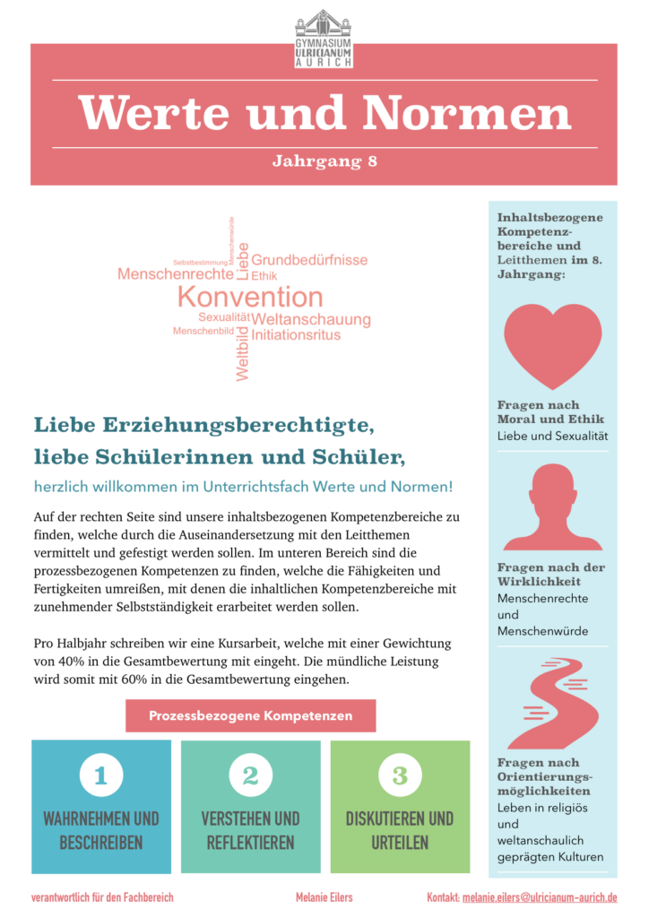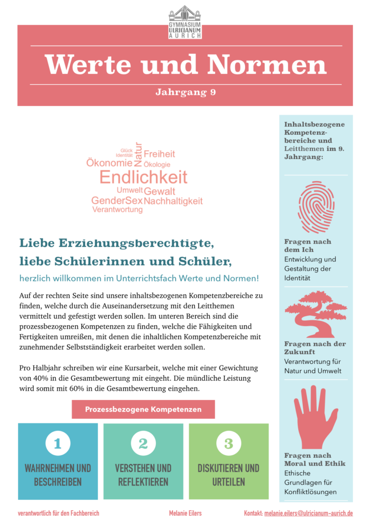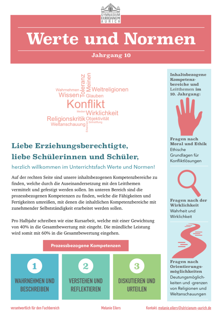 Dieses Fach bietet eine Alternative zum Religionsunterricht und richtet sich an alle, die sich mit ethischen, gesellschaftlichen und kulturellen Fragen beschäftigen möchten – unabhängig von einer religiösen Bindung. Wir sprechen über Grundwerte, Rechte und Pflichten, Lebensentwürfe, Umweltfragen, digitale Ethik und vieles mehr.